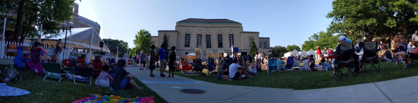 Ann Arbor というまちにはダウンタウンの中心部にミシガン大学のキャンパスがあります。その敷地や周辺道路を利用してよくイベントが開かれていて、その中でも有名なのがこの1か月続く無料のミュージックサマーフェスティバルです(有料のshowもあります)