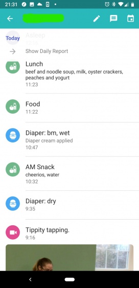 こどもが保育園に慣れてきたころにはカメラを見ることはほぼなくなりましたが、アプリの通知のおかげで日中の様子がわかり、睡眠時間が少ないようなら帰宅後にお昼寝をさせたり、と親と先生とで娘の一日の生活をみている実感があります。
