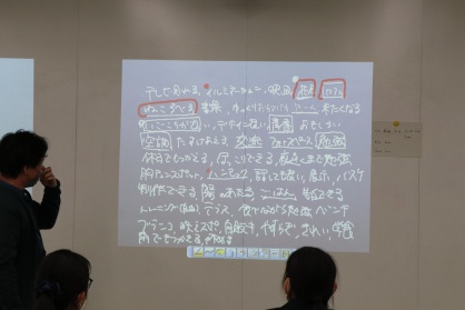 奈良高専、初めて行きましたが、なんともすごい環境でした。今回準備していただいた部屋は3つのプロジェクターが連動していて、タッチペンで書ける。こんな教室が何箇所もありました。しかも、地元の木材業者と協働でつくった部屋もあり、多様な学習環境が用意されていました。もしかすると来年度に継続的に関わらせていただけるかもしれません。